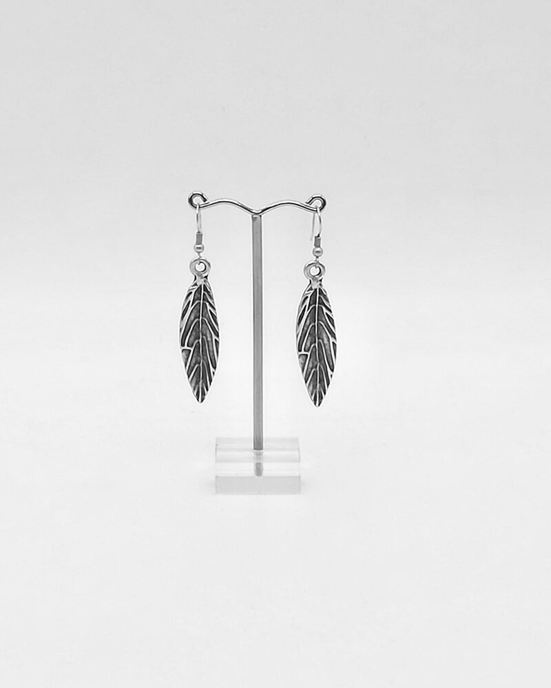 Orecchini A FOGLIA in “Zama” lega anallergica composta da Zinco, Alluminio e Rame, bagnata in argento senza Nichel.