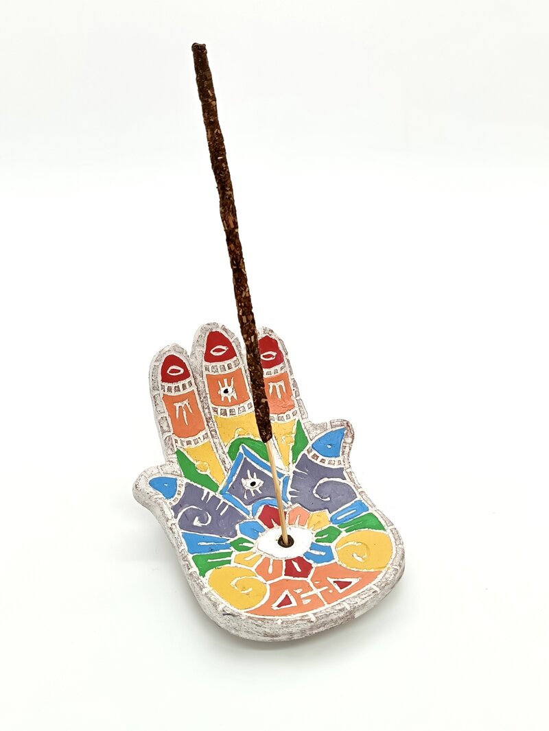 Bruciaincenso terracotta colorata, decorato con simboli.