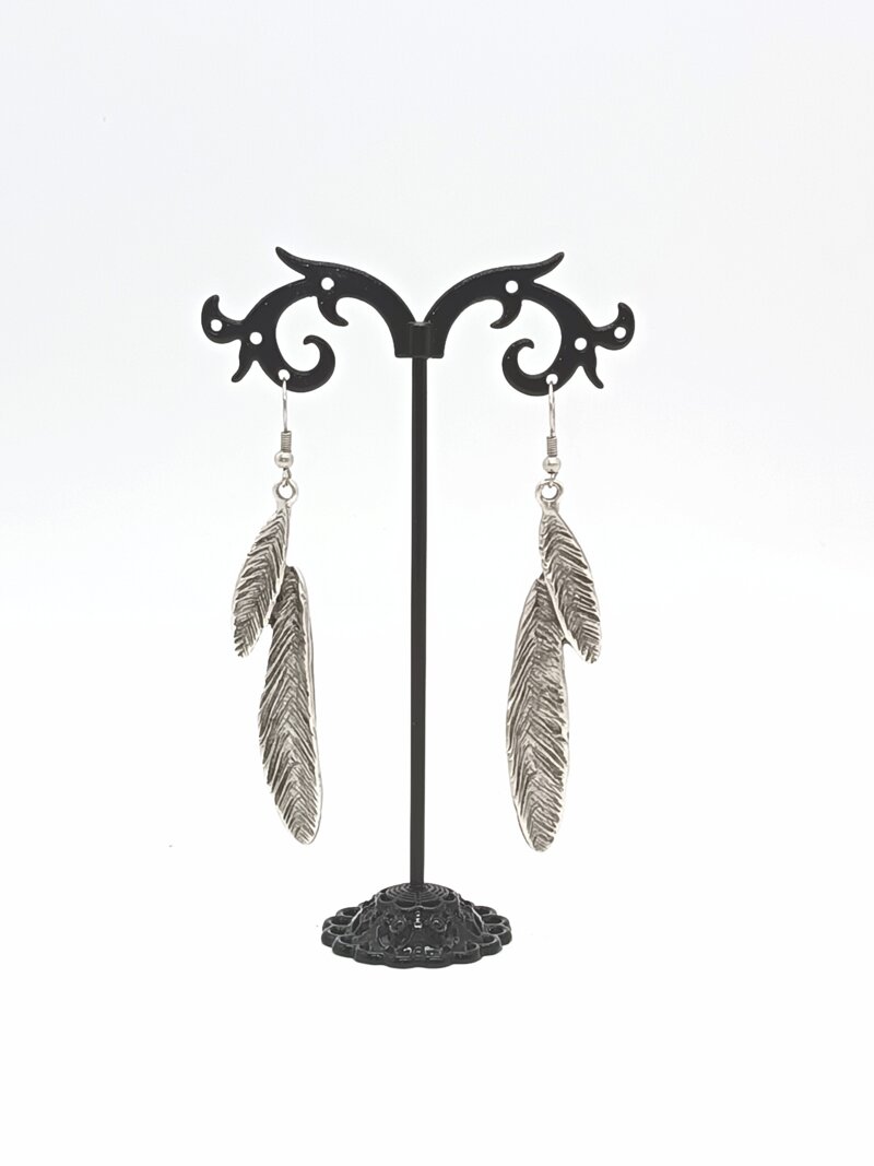 Orecchini doppia foglia in “Zama” lega anallergica composta da Zinco, Alluminio e Rame, bagnata in argento senza Nichel.