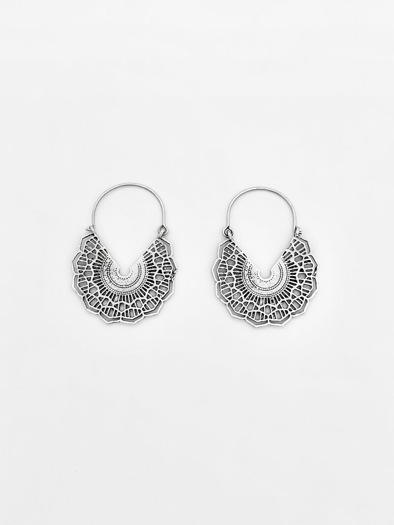 Orecchini traforati in ZAMA lega di metalli argentata, nichel free.