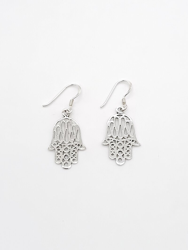 Orecchini in argento 925 Mano di Fatima, altezza pendente cm.2,4 altezza totale cm 3,2.