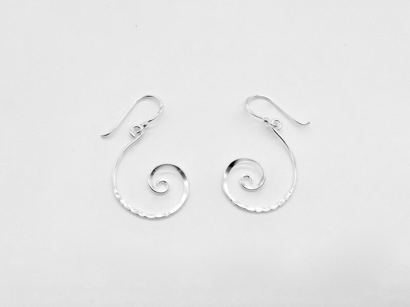Orecchini pendente a spirale in argento 925, parzialmente martellati.